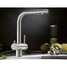 Зручний 3-в-1-змішувач з важелем холодної та гарячої води праворуч, і важелем для фільтрованої води ліворуч