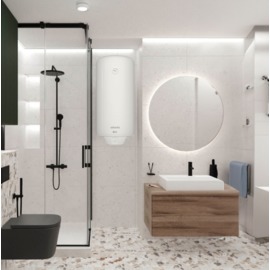 Стильний дизайн, з урахуванням квадратного термометра та нового логотипу, дозволяє легко вписати бойлер у дизайн будь-якого приміщення.. Зручне керування з механічним регулятором спрощує налаштування температури води. У новій версії також передбачені світловий індикатор нагрівання води у формі краплі та нижня матова кришка, що додають пристрою естетичної привабливості.