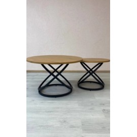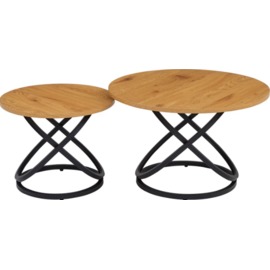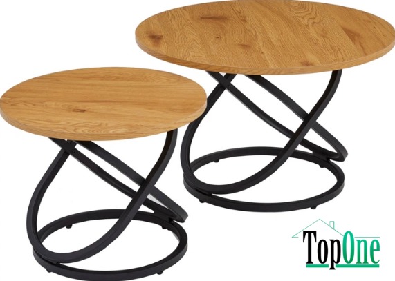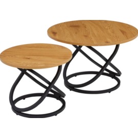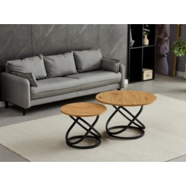 Комплект журнальних столів CT-55 Лівіо дуб + чорний — це вдале поєднання сучасного стилю та природної текстури. Столики різного розміру з круглими стільницями у відтінку теплого дуба додають інтер'єру глибини й багатошаровості, а чорна металева основа підкреслює графічність і стабільність форм.