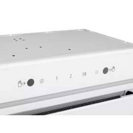 Ця модель має біле глянсове скло, яке не лише прикрашає витяжку, але й виконує практичну функцію – захищає панель керування та зону фільтру від забруднень. Загартоване скло витримує високу температуру та механічні впливи. Сенсори розташовані за склом і активуються дотиком або помахом руки.