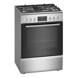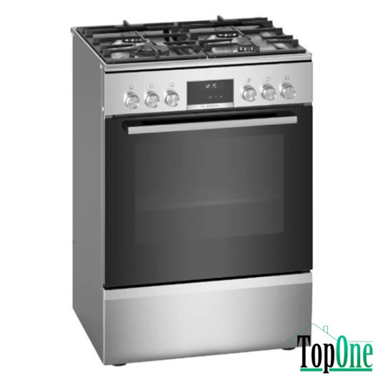 Комбінована плита Bosch HXS59AI51Q Серія 6 – це комбінована газоелектрична плита, що поєднує сучасний дизайн, зручність використання та високу продуктивність. Оснащена WOK-конфоркою, технологією 3D-Гаряче повітря, автоматичним запалюванням і інноваційною системою очищення, ця модель стане ідеальним вибором для кухні. Газова варильна поверхня + електрична духова шафа. Виготовлена з нержавіючої сталі. Має 9 режимів нагріву. Об’єм духової шафи 66 л. Варильна зона газової плити Bosch HXS59AI51Q має 4 види конфорок: фронтальна ліва: WOK, 3.5 кВт, задня ліва: 1.75, кВт, задня права: 1.75 кВт, фронтальна права економічна конфорка, 1 кВт.