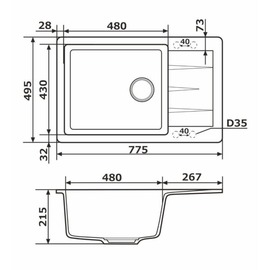 Простора чаша 480*430 мм легко вмістить велику кількість продуктів чи габаритний посуд. На широкому крилі є жолобки спеціальної форми для кращого відтоку води. З такою ж метою особливий дизайн має і дно кухонної мийки.