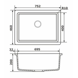 Розмір основних чаш (ШхДхГ), мм: 695x400x200, R внутрішніх кутів 10