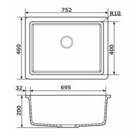 Розмір основних чаш (ШхДхГ), мм: 695x400x200, R внутрішніх кутів 10