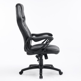 Підлокітники: нерегульовані, матеріал – посилений поліпропілен, колір – чорний, оббивка – м'яка артшкіра сірого кольору.