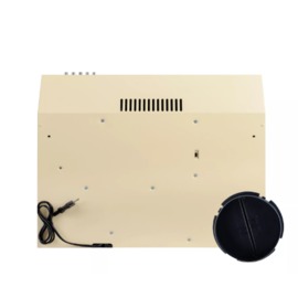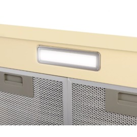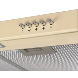 Корпус, пофарбований порошковою бежевою фарбою, добре витримує побутові умови, а козирок з загартованого скла додає вишуканості. Кнопки якісно інтегровані в корпус, стильно підсвічені і підкреслюють стильний вигляд витяжки. Прості геометричні форми гармонійно вписуються в сучасні інтер’єри. Поверхня легко очищається без втрати кольору чи блиску.