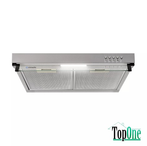 Кожна витяжка Minola підтримує два режими: відведення та рециркуляцію. У першому випадку повітря виводиться за межі приміщення, що особливо ефективно при інтенсивному приготуванні їжі. У другому — проходить фільтрацію через вугільний картридж і повертається вже очищеним. Завдяки цьому витяжка однаково добре працює в різних плануваннях кухонь. Зверніть увагу: вугільний фільтр для рециркуляції слід придбати окремо.