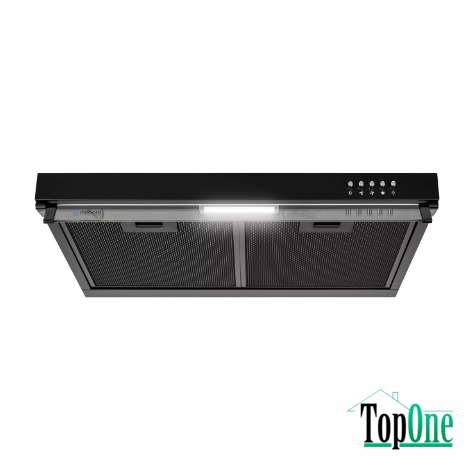 Minola HPL 6200 BLF — елегантна плоска витяжка глибокого чорного кольору з скляним козирком і продуктивністю 450 м³/год. Завдяки компактному дизайну вона ідеально вписується в сучасний інтер’єр кухні в будь-який меблевий блок на 60 см. LED-підсвітка забезпечує комфортне освітлення варильної робочої поверхні, а механічне керування — простоту й надійність у користуванні. Чорні алюмінієві фільтри доповнюють стильний вигляд і легко очищуються.