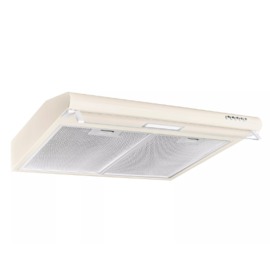 Модель виконана в ніжному бежевому кольорі, який легко поєднується з дерев’яними або світлими фасадами кухні. Фронтальна частина доповнена скляним козирком, що додає витонченості та сучасності. Корпус виготовлений зі сталі з пофарбованим покриттям, стійким до подряпин і перепадів температури. Якісні матеріали гарантують тривалий термін експлуатації.