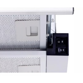 Механічне кнопкове керування забезпечує просту та інтуїтивну взаємодію з витяжкою. Лише три кнопки – перемикання швидкостей та вмикання-вимикання світла – мінімізують ризик поломок. Користувач вмикає та вимикає витяжку, просто витягаючи та засовуючи її висувну частину.