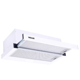 Ширина 595 мм дозволяє встановити модель шафи компактного формату, що зручно для невеликих кухонь. Корпус з фарбованого металу гарантує довговічність кольору та захист від плям та корозії. Телескопічний механізм працює плавно і реагує на висування. Діаметр повітроводу 15 см забезпечує сумісність із більшістю вентиляційних систем.