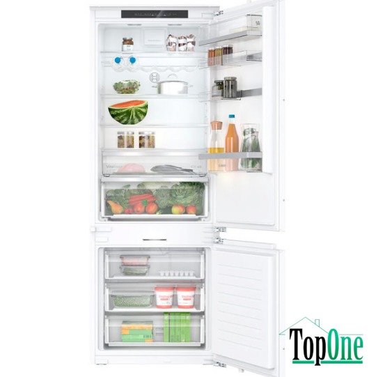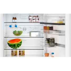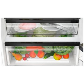 Вбудовуваний холодильник з нижньою морозильною камерою Bosch KBN96ADD0 серії 6 — це поєднання елегантного дизайну, сучасних технологій і високої функціональності. Загальний обсяг -381 л (холодильник — 284 л, морозильна камера — 98 л). Енергоспоживання: клас D, лише 204 кВт·год/рік. Морозильна потужність: до 10 кг/24 год, автономне збереження холоду — до 13 годин. Конструкція: 5 міцних поличок із загартованого скла (3 регульовані), металева хромована полиця для пляшок, дверні кошики різного розміру. Комплект шарнірів для важких дверцят забезпечує плавне та надійне зачинення. Автоматичне розморожування холодильного відділення спрощує догляд за технікою. Кліматичний клас: SN-T — стабільна робота навіть при високих температурах навколишнього середовища. Навішування дверцят: правостороннє, з можливістю перенавішування. Довжина шнура живлення: 2,3 м. Габарити (ВхШхГ): 194×71×55 см. Ніша для вбудовування: 194×71×56 см.
