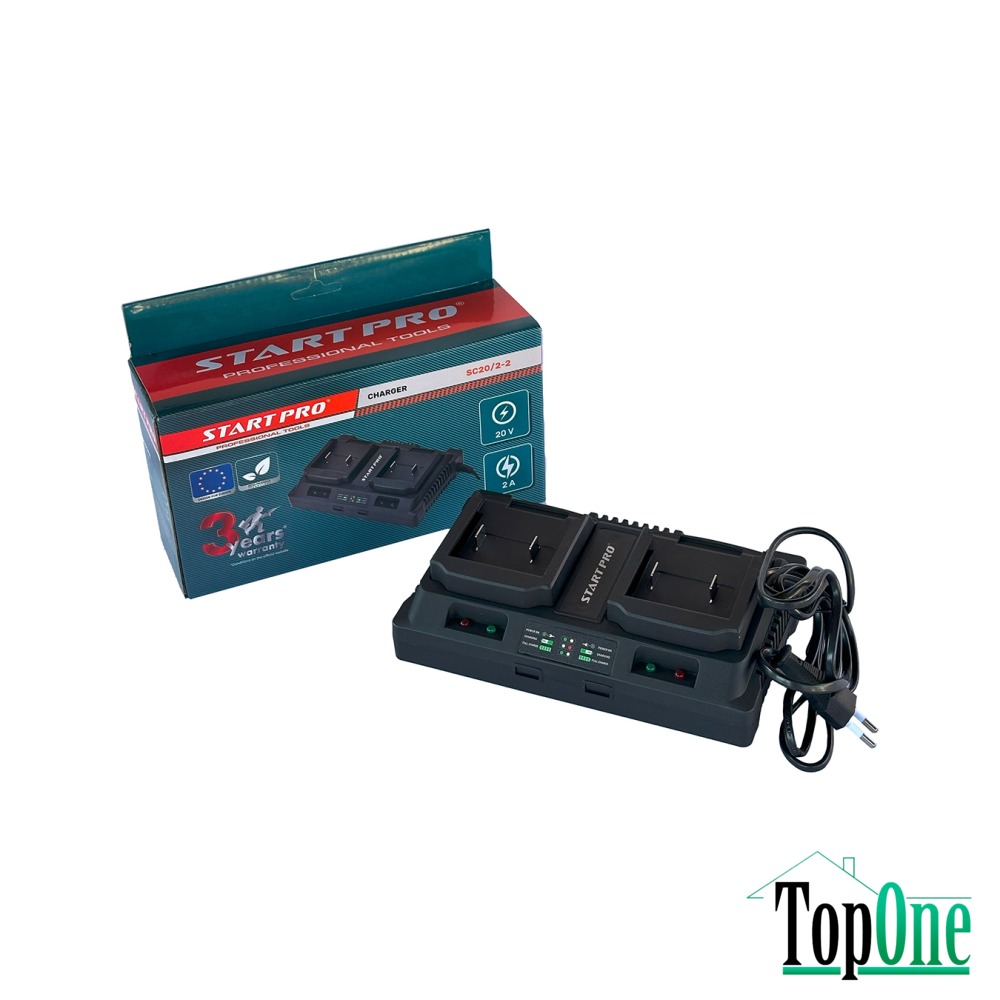 Зарядний пристрій START PRO SС20/2-2 — це сучасне рішення для швидкої та безпечної зарядки акумуляторів лінійки 20V MAX Start Pro ONE FOR ALL. Він розроблений спеціально для професійного та побутового використання, забезпечуючи стабільну роботу електроінструменту в будь-яких умовах.
