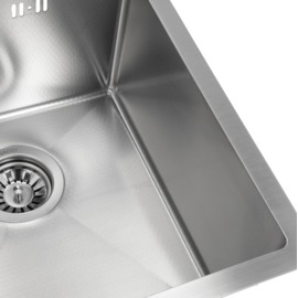 Лаконічний дизайн акцентує на місткості чаші. Розміри мийки (410х500х220 мм) розраховані на велику кількість посуду, так само зручно мити тут габаритні каструлі чи сковорідки.