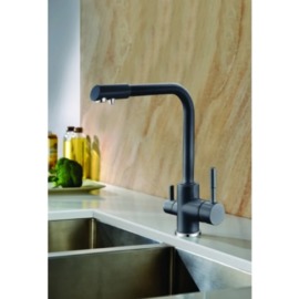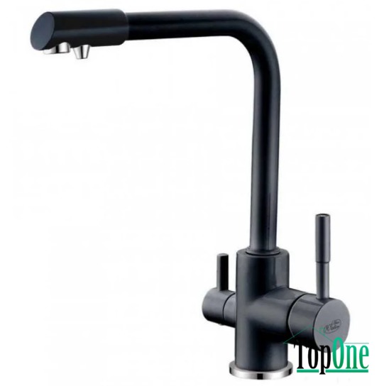 Комбінований двоважільний кухонний змішувач Blue Water AMANDA Чорний металік для проточної та фільтрованої води.