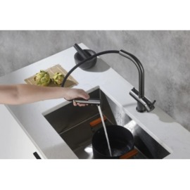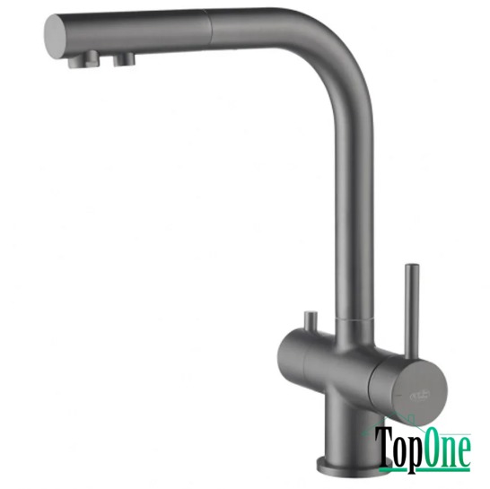 Комбінований 4-х канальний кухонний змішувач Blue Water APALA Графіт (Gun metal) для проточної, фільтрованої та мінералізованої води з витяжним носиком.