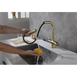 Комбінований 4-х канальний кухонний змішувач Blue Water APALA Графіт (Gun metal) для проточної, фільтрованої та мінералізованої води з витяжним носиком.