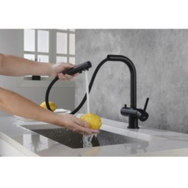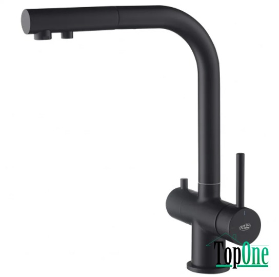 Комбінований 4-х канальний кухонний змішувач Blue Water APALA Чорний матовий для проточної, фільтрованої та мінералізованої води з витяжним носиком.
