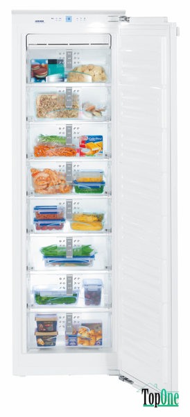 Морозильная камера с системой NoFrost Liebherr IGN 3556. Имеет автоматический режим SuperFrost, который быстро понижает температуру в морозильной камере до -32 градусов, необходимый для замораживания продуктов с максимальным сохранением витаминов. Максимум через 65 часов морозильнык возвращается в обычный режим работы. Технология NoFrost не позволяет образовыватся намораживаниям на внутренних стенках и продуктах. Контейнеры высокие и большие, они полностью выдвигаются и имеют прозрачные стенки. В дверь встроен амортизирующий доводчик, благодаря чему двери закрываются плавно.