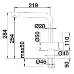 Длина излива 21,9 см