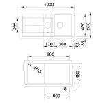 *Учитывать ширину пристенного канта в случае установки мойки возле стены или пенала.