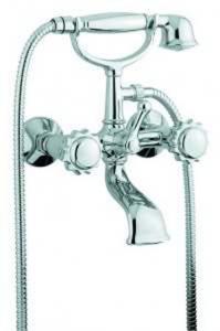 Смеситель Emmevi BO19.011A оснащен двумя вентилями смешивания и регулирования холодной и горячей воды. В стандартную комплектацию входят – две эксцентрические муфты для настенного монтажа и два декоративных отражателя, душевой шланг, душевая лейка и держатель душевой лейки, короткий фиксированный излив оборудован аэратором. Цельно - литой корпус смесителя изготовлен из экологически чистого материала (латунь).