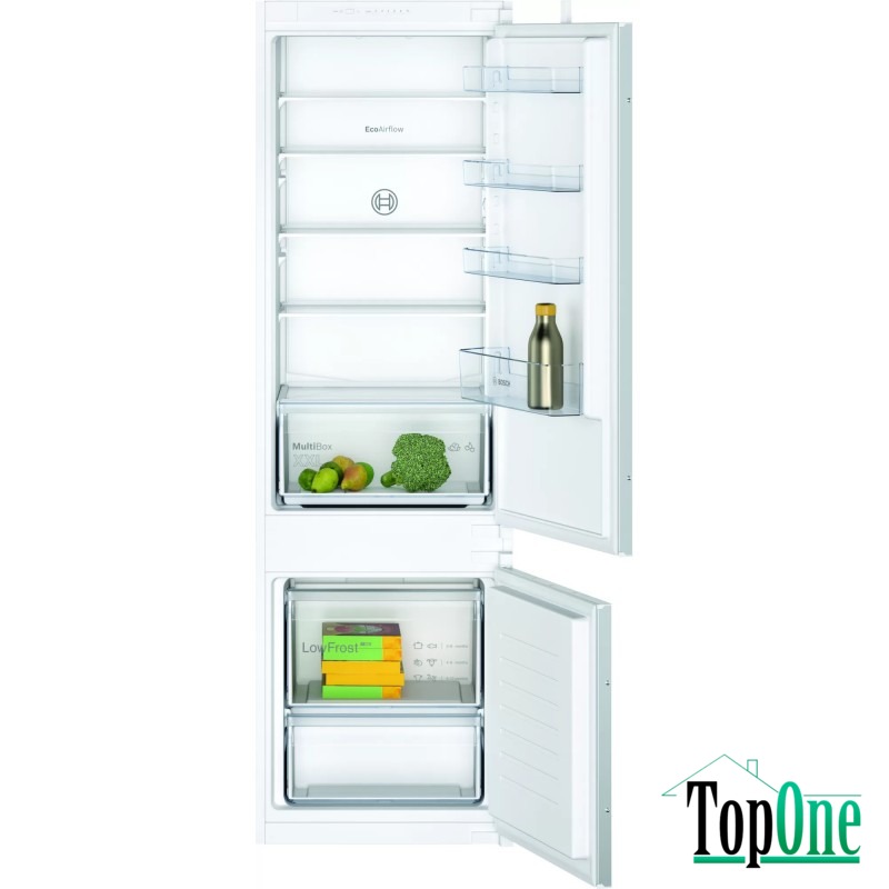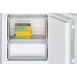 Serie | 2 Встраиваемый холодильник Bosch KIV87NSF0 с нижней морозильной камерой: просторная встраиваемая холодильная морозильная комбинация с системой LowFrost обеспечивает оптимальные условия хранения пищи.