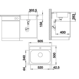 Мийка Blanco Dana 6 виконана з нержавіючої сталі товщиною 0.6 мм і підходить для установки в кухонну шафу шириною 60 см. Глибина чаші мийки становить 16 см. Модель Dana 6 525 323 виробляється на заводі Blanco в Німеччині.