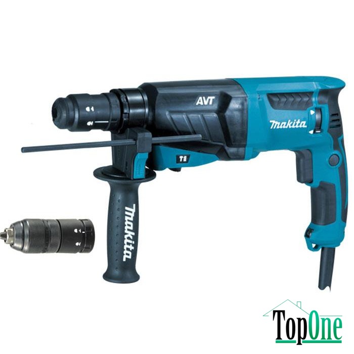 Перфоратор Makita HR2631FT є на території України новинкою, яка увібрала у себе всі найкращі розробки відомого японського бренду. Інструмент здатний виробляти до 4600 ударів за хвилину з силою 2,4 Дж і до 1200 оборотів за хвилину завдяки 800-ватному мотору та конструкції самого агрегату. Регулювання числа ударів та оборотів прямо пропорційна зусилля натискання на «курок» моделі. Перфоратор Makita HR2631FT слід купити ще й по тому, що він оснащений оригінальною антивібраційною технологією (AVT) і світлодіодним підсвічуванням. Ціна даної моделі обумовлена максимумом новітніх технічних рішень, застосованих у даному апараті, тому придбати інструмент буде абсолютно правильним рішенням, яке обов'язково позбавить Вас незручностей у роботі. Апарат комплектується двома взаємозамінними патронами (трикулачковим та SDS-Plus) та якісним кейсом для зручного зберігання та транспортування агрегату.