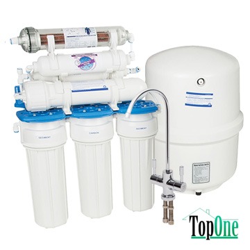 Обратный осмос – метод очистки воды, при котором вода под действием магистрального трубопроводного давления последовательно проходит очистку через 7 фильтрующих элементов: