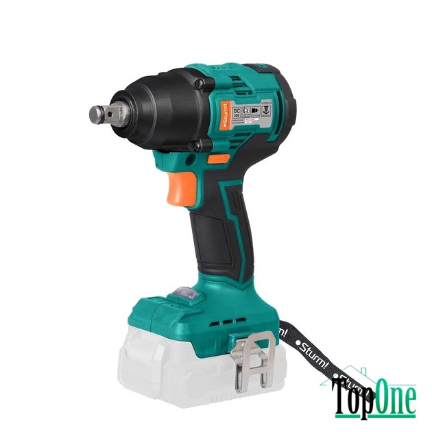 Sturm IW3220CLB Brushless (новинка 2023!) – акумуляторний ударний 20-вольтовий двошвидкісний гайковерт з квадратом 1/2″ з лінійки інструменту Sturm під єдину акумуляторну платформу. Має компактні габарити і невелику масу, що дає змогу його впевнене використання в умовах з обмеженим доступом або під час робіт на висоті. Завдяки вивіреному нейтральному центру тяжіння та продуманій ергономіці пристрій відмінно контролюється в процесі роботи та надійно у хваті. Одна з найважливіших особливостей Sturm IW3220CLB – продуктивний безщітковий електромотор – за рахунок нього збільшується стійкість до перевантажень і забезпечується краща продуктивність на одному заряді АКБ, крім того, такий мотор не схильний до перегрівання і дає змогу довше працювати без перерви. Гайковерт оснащений потужним планетарним редуктором, що дозволяє досягти показників у 500 Нм крутного моменту, в режимі реверсу і 350 Нм в режимі закручування, і має дві швидкості, що значно розширюють функціональність пристрою: в режимі знижених обертів модель, розвиває до 2500 об/хв. ударів до 3100 уд/хв, у режимі підвищених обертів – до 3200 об/хв при кількості ударів до 4000 уд/хв. Крім того, у моделі Sturm IW3220CLB передбачена функція автоматичного гальма (в режимі реверсу), що зупиняє вал шпинделя відразу після відкручування кріплення. Активація/деактивація автоматичного гальма, а також перемикання швидкостей виконується спеціальною кнопкою в нижній частині інструменту та позначається відповідними індикаторами. Наявність LED підсвічування робочої зони дозволяє ефективно використовувати гайковерт навіть в умовах із недостатнім освітленням. Для надійного закріплення інструменту до пояса в комплект постачання входить міцна причіпна скоба.