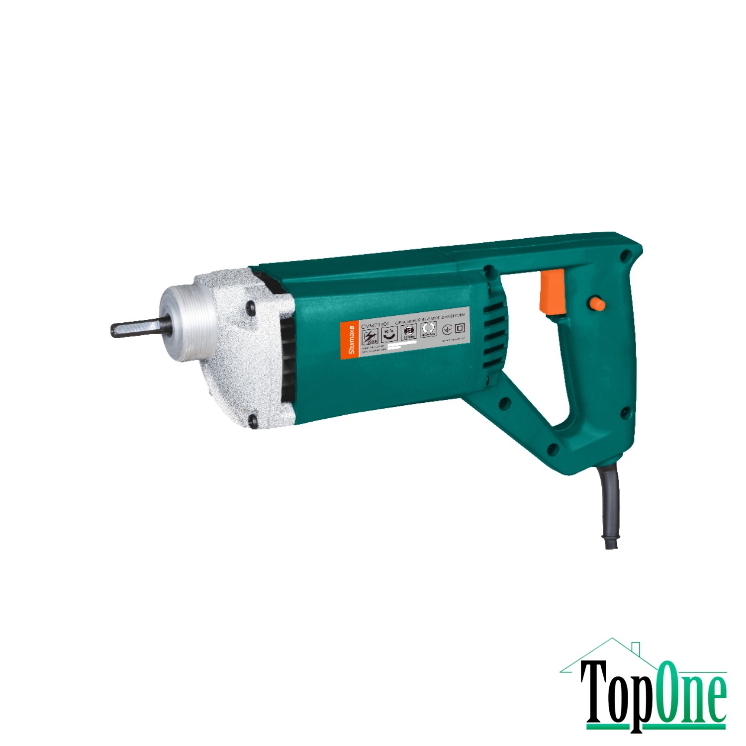 Sturmax CVM7101 – глибинний вібратор для бетону. Призначений для ефективного ущільнення бетонних сумішей при заливанні фундаментів, стін, колон і т.д. З його допомогою відбувається видалення повітряних порожнин з бетону, що підвищує міцність та покращує якість кінцевого виробу. Інструмент має компактні габаритні розміри і відносно невелику вагу, що робить його максимально зручним при тривалому, безперервному використанні. Корпус моделі виконаний з якісного удароміцного пластику, а його верхня частина – з металу, що сприяє кращому тепловідводу у процесі роботи. Надійність хвату забезпечує ергономічна D-подібна рукоятка. Модель оснащена 1000 Вт електромотором та розрахована на роботу з гнучким валом довжиною один метр з діаметром вібронаконечника 35 мм (є в комплекті постачання).