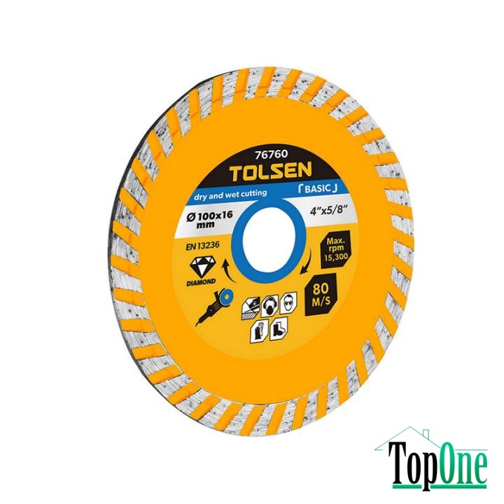 Диск алмазний Турбо 125 х 22 мм сегмент 7 мм Tolsen – це високоякісний ріжучий інструмент, призначений для ефективної роботи з твердими матеріалами, такими як бетон, камінь, кераміка та цегла. Завдяки технології Турбо, диск забезпечує швидке різання з мінімальним нагріванням, що знижує знос та подовжує термін служби. Сегмент висотою 7 мм гарантує стійкість до інтенсивних навантажень та дозволяє виконувати точні та чисті розрізи. Отвір діаметром 22 мм забезпечує надійне кріплення на болгарках та інших сумісних інструментах.