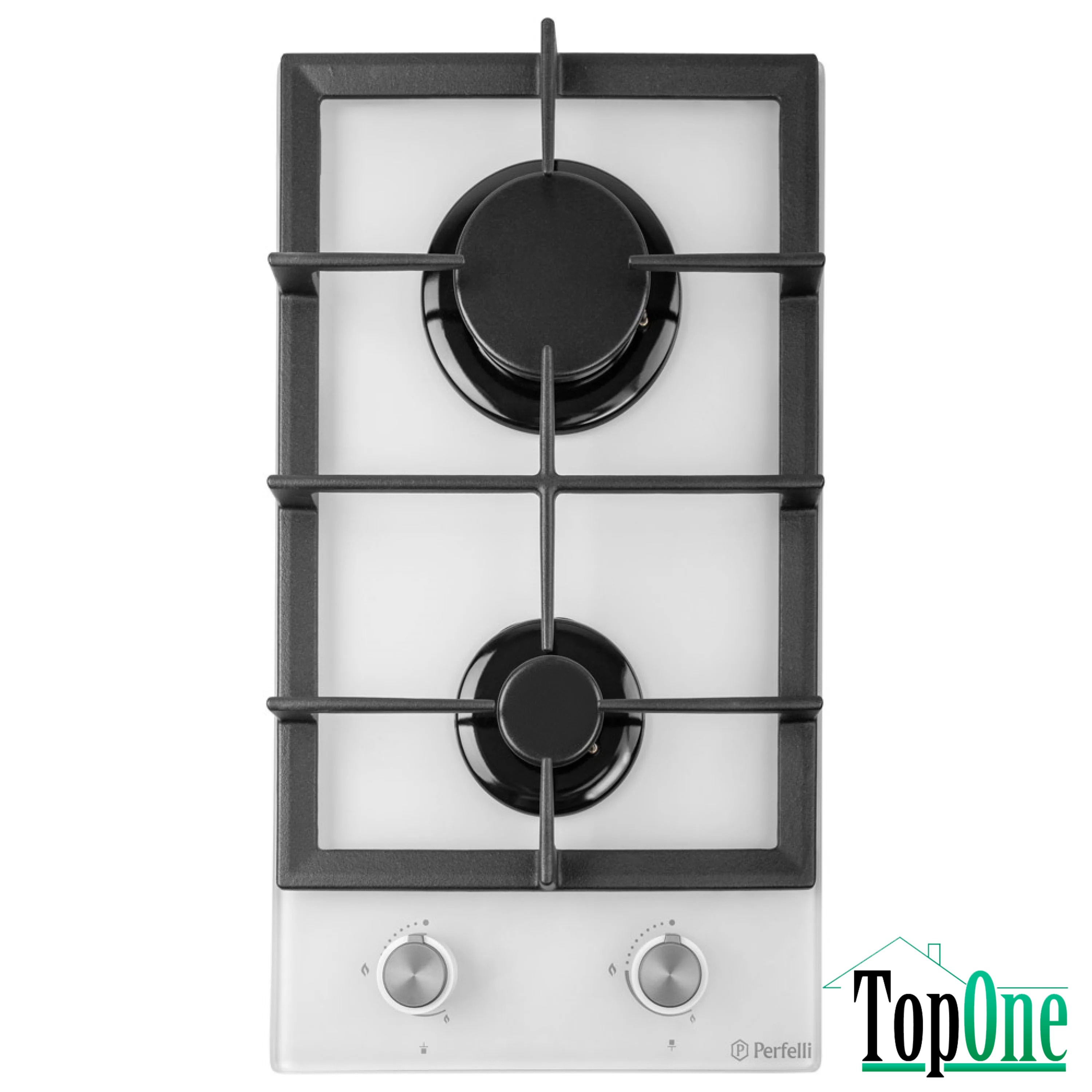 Варильна поверхня "газ на склі", колір-білий, ширина 29 см, 2 газові конфорки, газ-контроль, електрозапалювання в ручках управління, чавунна решітка, фронтальна панель управління, перехідники (жиклери) на балонний газ