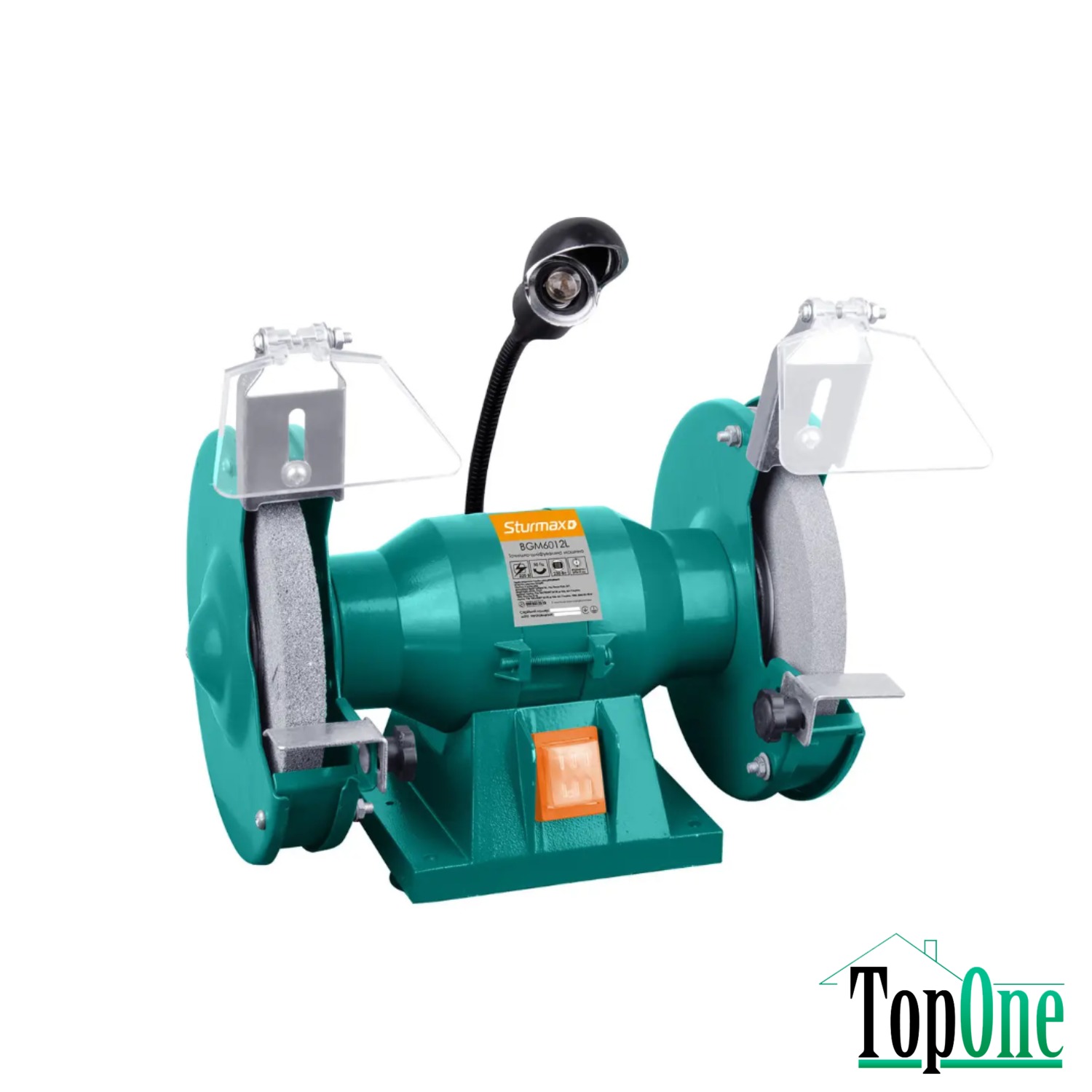 Sturmax BGM6012L – універсальний точильно-шліфувальний верстат –призначений для широкого спектру робіт: заточування, шліфування, зняття іржі, надання деталям необхідної форми і т.д. Модель є однією з найкомпактніших у лінійці точильно-шліфувальних машин Sturmax – відносно невеликі габаритні розміри та маса забезпечують легкість при транспортуванні та дають можливість розмістити інструмент навіть в умовах обмеженого простору.При необхідності пристрій можна зафіксувати до робочої поверхні – для цього на станині передбачені отвори кріплення. Верстат оснащений надійним асинхронним двигуном потужністю 230 Вт і має низькі показники по шуму, вібрації та нагріванню. Комплектується двома абразивними колами з сірого електрокорунду діаметром 125 мм і товщиною 16 мм, з різним типом зернистості, що дозволяє використовувати верстат як для грубих обдирних, так і для чистових заточувальних операцій. Для більшої зручності користувача конструкцією передбачена можливість безінструментального (за допомогою барашкових гайок) регулювання опорних кронштейнів – це дозволяє при необхідності швидко та легко встановити упор для виробу, що заточується під потрібним кутом. Завдяки наявності великих та міцних іскрозахисних екранів з полікарбонату оператор надійно захищений від іскор та металевої стружки та може контролювати робочий процес, без ризику отримання випадкових травм. Наявність потужної лампи підсвічування робочої зони, встановленої на гнучкій основі, дозволяє ефективно використовувати інструмент навіть в умовах недостатнього зовнішнього освітлення.