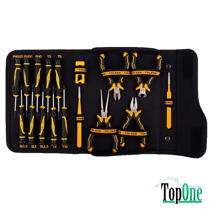 Набір прецизійних інструментів Tolsen на 17 предметів — ідеальний вибір для точних робіт у сфері електроніки, годинникової справи, ремонту окулярів, мобільної техніки та інших дрібних пристроїв. У комплекті: різні викрутки, пінцети, інструменти для розбирання та збирання.