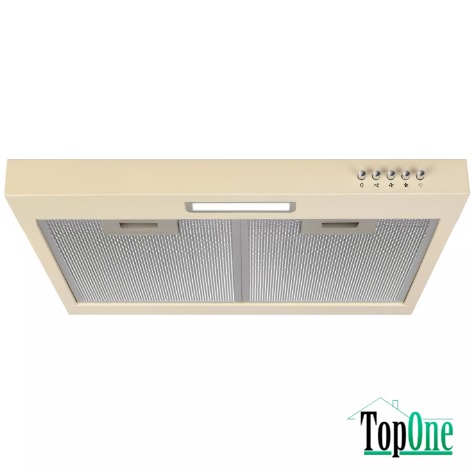 Корпус, пофарбований порошковою бежевою фарбою, добре витримує побутові умови, а козирок з загартованого скла додає вишуканості. Кнопки якісно інтегровані в корпус, стильно підсвічені і підкреслюють стильний вигляд витяжки. Прості геометричні форми гармонійно вписуються в сучасні інтер’єри. Поверхня легко очищається без втрати кольору чи блиску.