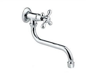 Змішувач оснащений одним хрестоподібним вентилем для холодної води. Обладнаний поворотним виливом плавно вигнутої форми.