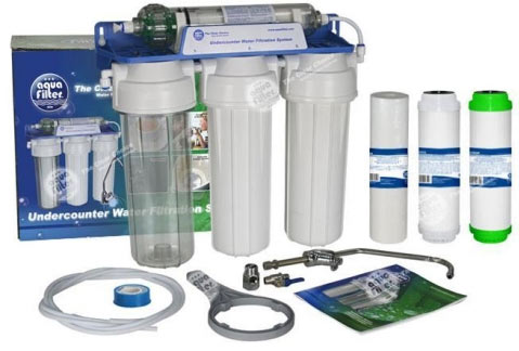 Aquafilter FP3-HJ-K1– система очистки воды, устанавливаемая под кухонную мойку. В комплект входят картридж FCPS-5 (удаляет песок, ржавчину, ил и другие механические загрязнения более 5 мкм), умягчающий и обезжелезывающий картридж FCCST-2 (понижает концентрацию железа, умягчает воду, заменяя ионы кальция и магния на ионы натрия) и картридж с активированным углём из скорлупы кокосовых орехов, засыпкой KDF® и с полипропиленовым волокном FCCBKDF (удаляет сероводород, хлор, пестициды, фенол, бензол, понижает концентрацию тяжёлых металлов: свинец, мышьяк, ртуть, кадмий).
