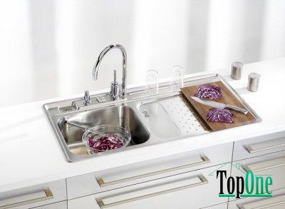 Мойка серии Vision – это фактически небольшая кухня, наполненная новыми идеями. Дизайн этих моек удовлетворяет требованиям современных поваров, ожидающих от мойки максимальную функциональность и эргономичность. Большая чаша и рифленое крыло обеспечивают легкость мытья и сушки посуды. Характерная особенность - дополнительная зона сушки со сливным отверстием, где Вы можете хранить свою губку или сливать ненужную жидкость. Мойка разработана таким образом, что бы вода не скапливалась на ее поверхности, а максимально быстро сливалась через сливные отверстия. Мойки Vision изготавливаются из долговечной нержавеющей стали, толщина которой превышает среднее значение, что обеспечивает дополнительную жесткость и долгий срок службы. Особый способ изготовления краев облегчает уход за мойкой. Функциональность мойки может быть дополнена входящими в комплект аксессуарами (деревянной разделочной доской, коландером из нержавеющей стали и сифоном клан-автомат).