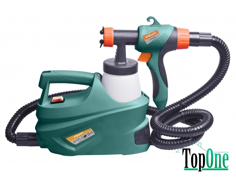 Краскопульт Sturm SG9645B - продуктивний, зручний в експлуатації пристрій для внутрішніх та зовнішніх фарбувальних робіт. Призначений для роботи з швидковисихаючими фарбами на водній основі, лаками та поліруваннями, може використовуватися в авторемонтних майстернях, суднобудуванні та судноремонті, а також при виробництві побутових фарбувальних робіт. Колекторний двигун потужністю 450 Вт з турбіною, встановлений на фарбопульті Sturm! SG9645B, виконаний за технологією подачі великого об'єму повітря при малому тиску, дає можливість швидко та якісно виконати великий обсяг робіт. Можливість ручного регулювання витрати фарби безпосередньо при фарбуванні підвищує якість та знижує витрату рідини. Бачок 0,6 л забезпечує тривалу безперервну роботу. У фарбопульті Sturm! SG9645B встановлений повітряний фільтр, що перешкоджає попаданню пилу всередину, легкий доступ до фільтра дає можливість його швидко очистити при необхідності. Відносна компактність і невелика вага (2,4 кг) роблять пристрій зручним у роботі та транспортуванні.