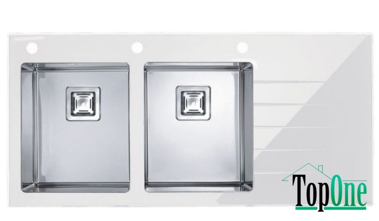 Мийка Alveus crystalix 30L (90-116X54)sat, скло біле, ліва 1099646