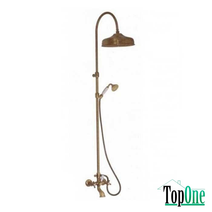Смеситель Emmevi BR1261181 оснащен двумя крестообразными вентилями смешивания и регулирования холодной – горячей воды с переключением ванна/душ. Корпус смесителя изготовлен из экологически чистого материала (латунь). В комплект входит душевая стойка, верхняя лейка и ручная лейка.