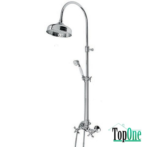 Душевая колонка из латуни Emmevi CR1200281 с подвижным изливом дивертером и крепежом для ручного душа. Подключение воды через настенный смеситель.