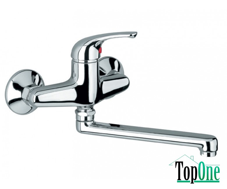 Змішувач Emmevi CR10005G оснащений керамічним дисковим картриджем під один важіль змішування та регулювання холодної – гарячої води. Настінний змішувач має подовжений поворотний вилив з великим радіусом дії, збільшуючи робочий простір, що дозволяє його використовувати для мийок як з однією, так і двома чашами. Цілісно-литий корпус змішувача виготовлений з екологічно чистого матеріалу (латунь).