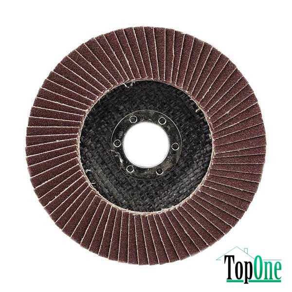 Диск пелюстковий Зеніт Т29 Zirconia 125х22.2мм К40 11025040 - Площа шліфованої поверхні опуклих пелюсткових тарілкових кіл уже, ніж прямих. Завдяки більш точному використанню опуклою формою досягається більша продуктивність шліфування за одиницю часу, ніж пряма, і тому вона особливо переважна до обробки кутових та зварювальних швів. опуклі шліфувальні диски з покриттям із оксиду алюмінію на зв'язці із синтетичної смоли та з основою - із скловолокна. Коло являє собою набір пелюсток із шліфувальної шкірки, радіально закріплених по торцю маточини під кутом 15° до площини.