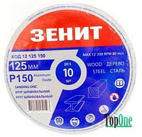 Круг шліфувальний Зенит на липучці 125мм з. 150 , 10шт (12125150)