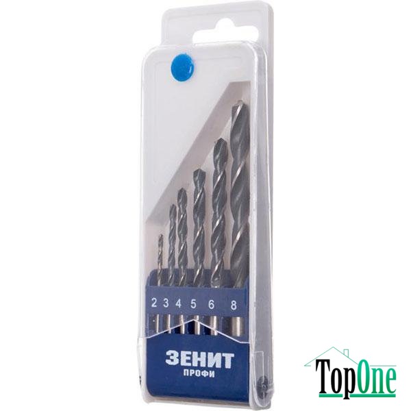 Набір свердел по металу Зеніт Р6М5 2-8мм, 6шт 30206208 - застосовується спільно з дрелями для виконання отворів в деталях з легованої та конструкційної сталі, кольорових металів та ін.