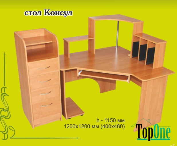 Компьютерный стол "Консул" поможет решить проблему эргономичного распределения пространства, предоставив тем самым максимальные удобства и комфорт для работы на ПК. Полка под клавиатуру на телескопических направляющих. Специальные полочки под диски, достаточно места для установки принтера и сканера. Наличие ящиков для вещей и подставки под системный блок. В комплекте отдельностоящая вместительная тумбочка с четырьмя отделами и двумя полочками. Стол эконом-класса. Данная модель компьютерного стола выполнена из прочного ДСП в характерном современном стиле. Компьютерный стол "Консул" прекрасно подойдет как для домашнего использования, так и для офисного. В нем есть весь необходимый функционал, который обеспечит максимально комфортную работу.
