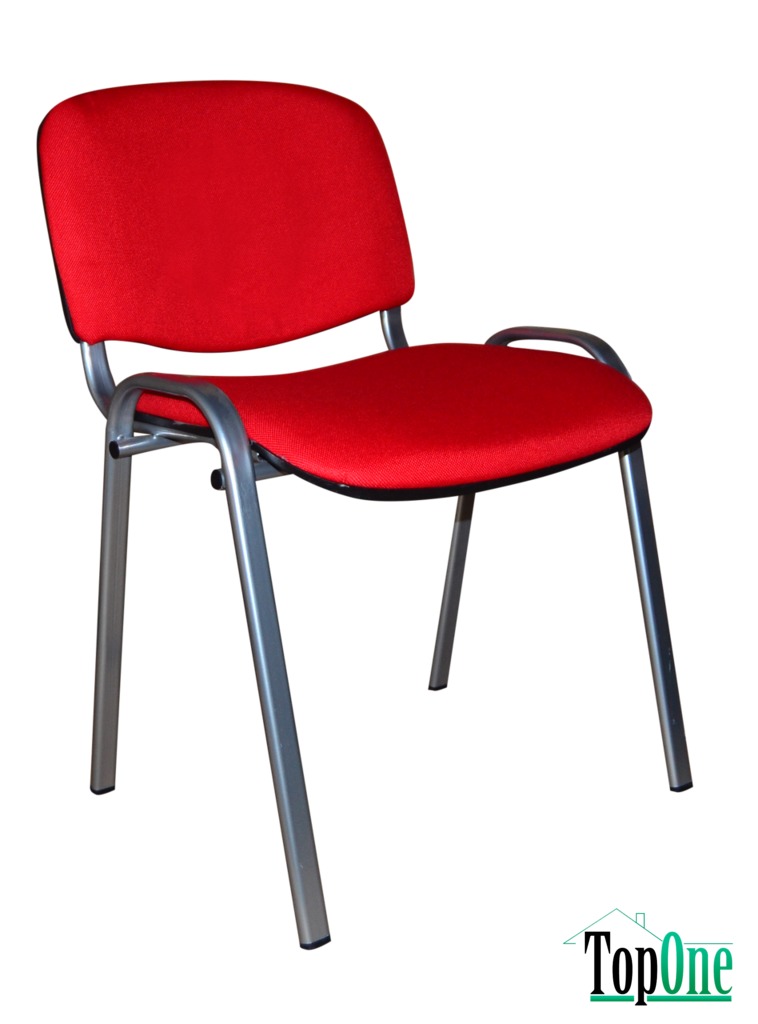 Стілець ISO alum С-2 має металеву раму алюмінієвого кольору, м'які сидіння та спинку.